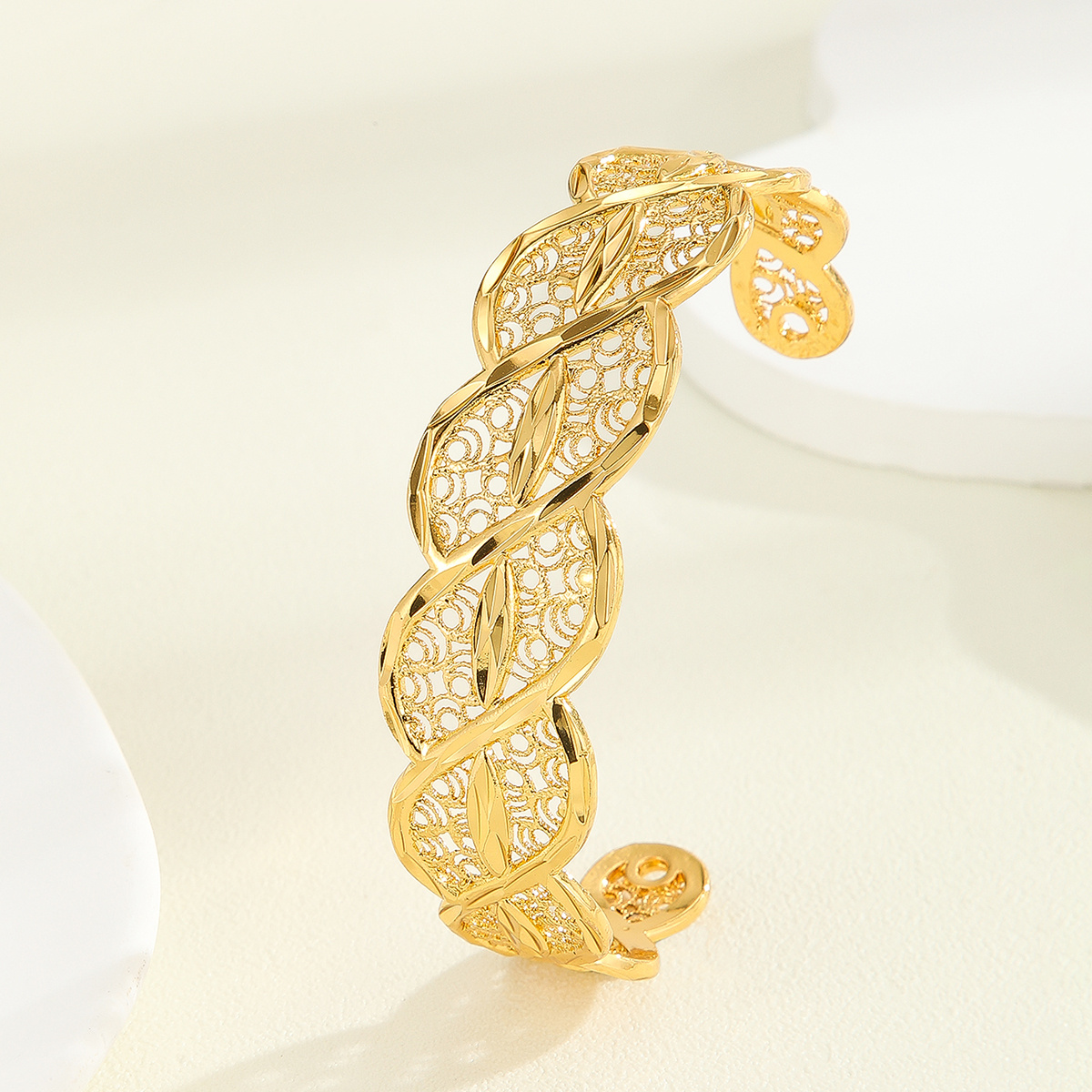 Fashion Copper Plated 18K Gold Diamond Pattern Bracelet, Fried Dough Twists Rope Open Bracelet